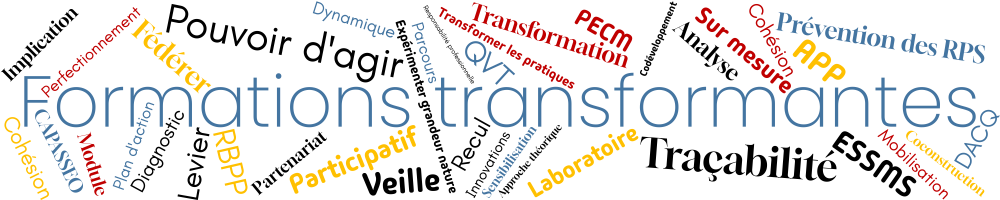 La logique de la formation transformante est un processus dynamique qui mêle apports ciblés, analyse de la pratique interne et co-construction d’un plan d’actions adapté et ajusté aux besoins de l’établissement et de l’équipe. Elle peut même aller jusqu’à la mise en œuvre de certaines actions.